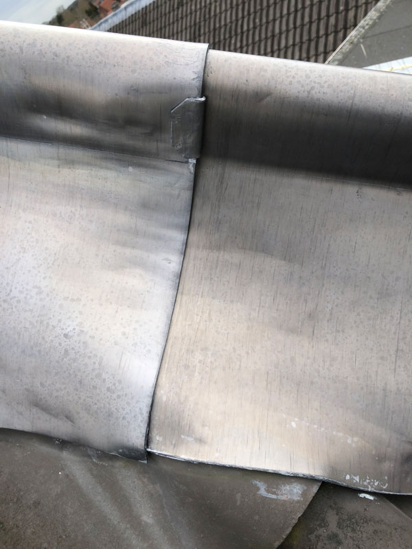 We hebben het pannendak van het Gemeentehuis van Deurne voorzien van nieuw noklood en keperlood. Zowel het lood op de nok als op de hoekkepers (waar de schuine dakdelen samen komen) hebben we vernieuwd. Om goed bij het profiel van de pannen aan te sluiten hebben we eerst een mal gemaakt en daarop het lood in vorm geklopt. Op het dak hoefde daarna nog maar kleine vormaanpassingen gemaakt te worden. Daarmee is de waterdichtheid van het dak weer voor lange tijd verzekerd. Na het aanbrengen is het lood gepatineerd om witte aanslag te voorkomen.