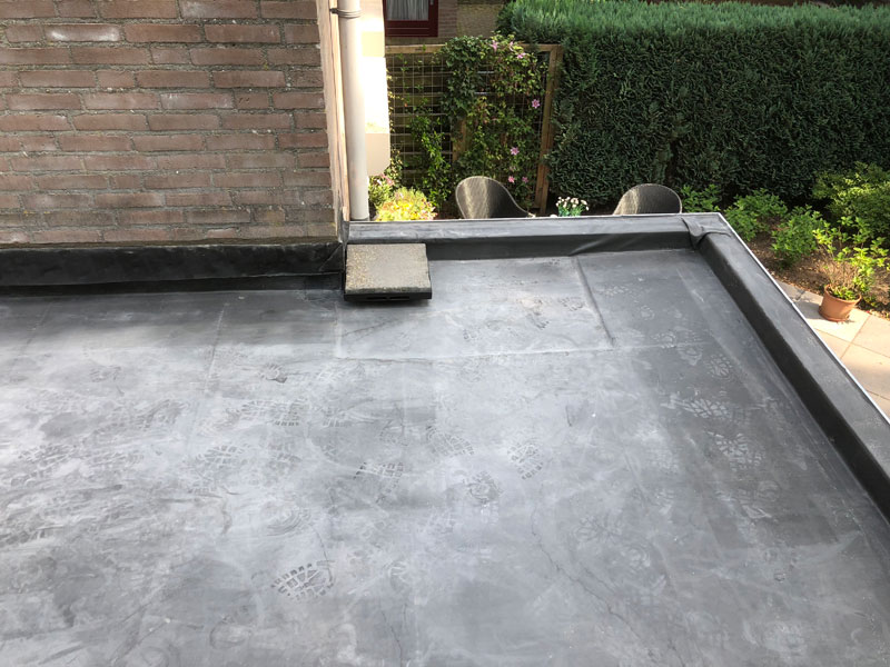 Het dak van een garage van een woonhuis in Helmond hebben we volledig gerenoveerd. Het oude dak met bitumen is verwijderd. Daarna hebben we een nieuwe dakconstructie gemaakt, het dak voorzien van nieuwe dakplaten en een nieuwe bedekking van EPDM uit één stuk aangebracht. Ook het (versleten) oude lood is vervangen door Ubbink loodvervanger (Ubiflex).