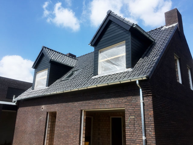 Zinkwerk voor goten en dakkapellen van nieuwbouwwoning.