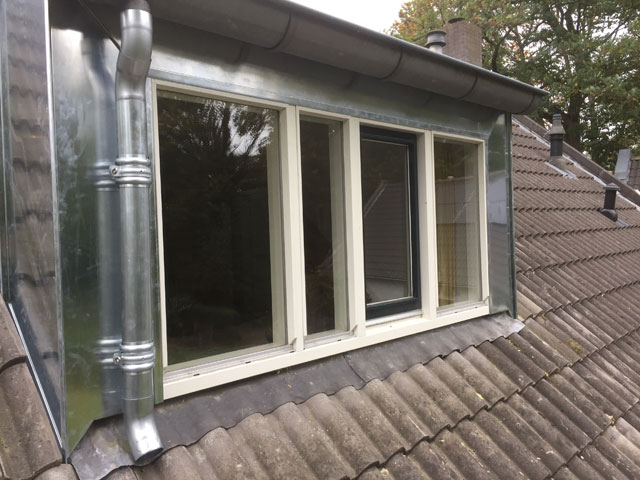 Zinken dakkapel (felswerk), waterdichte plaatsing van kozijn.